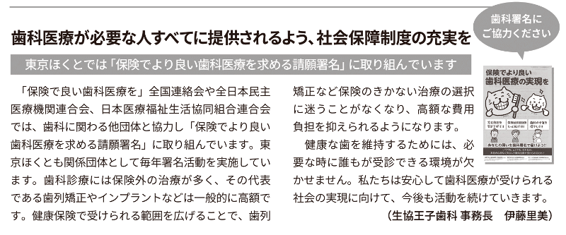 歯科医療が必要な人すべてに提供されるよう、社会保障制度の充実を
